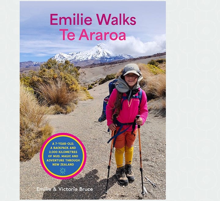 Emilie’s frank, funny and informative account of walking Te Araroa at age seven is beautifully illustrated with many photographs as well as Emilie’s own drawings.